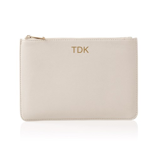Embroidered Name Bright Pink Thread Waffle Weave Cosmetic Bag - Light Pink