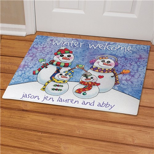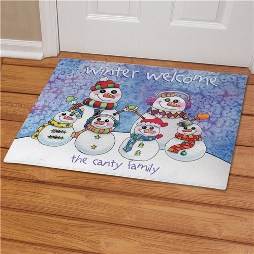 Personalized Cute Watercolor Santa and Snowmen with Family Name Tree Skirt REG PRICE: $74.99