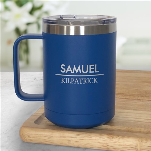 Personalized Engraved Initial & Name with Double Lines Insulated Mug
