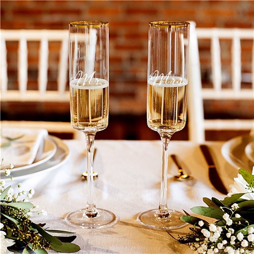 Engraved Mr-Mrs static Gold Rim Chpn. Flute - Set of 2